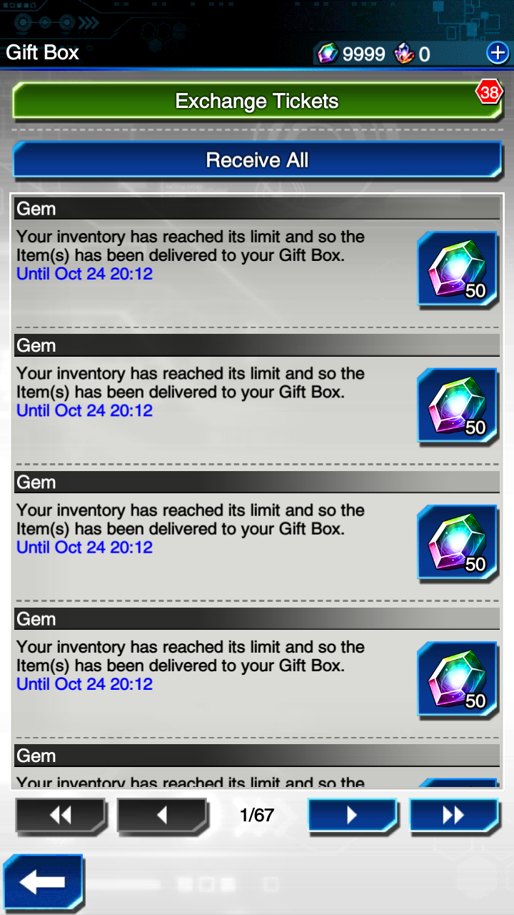 Some gems are stored in the gift box — you will need to claim them from there.